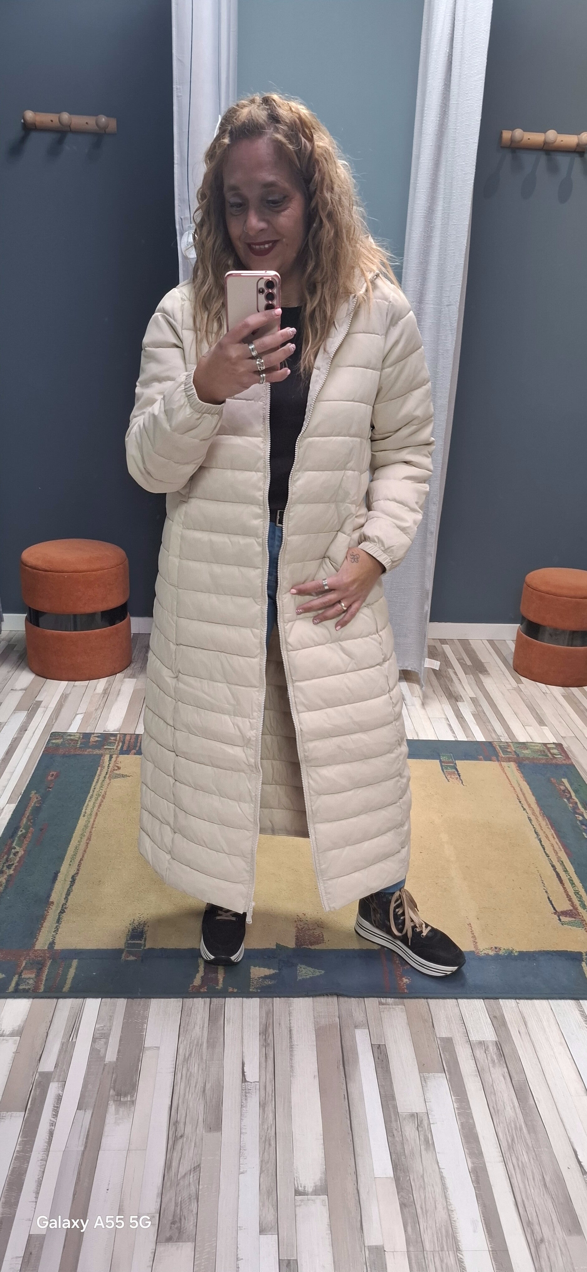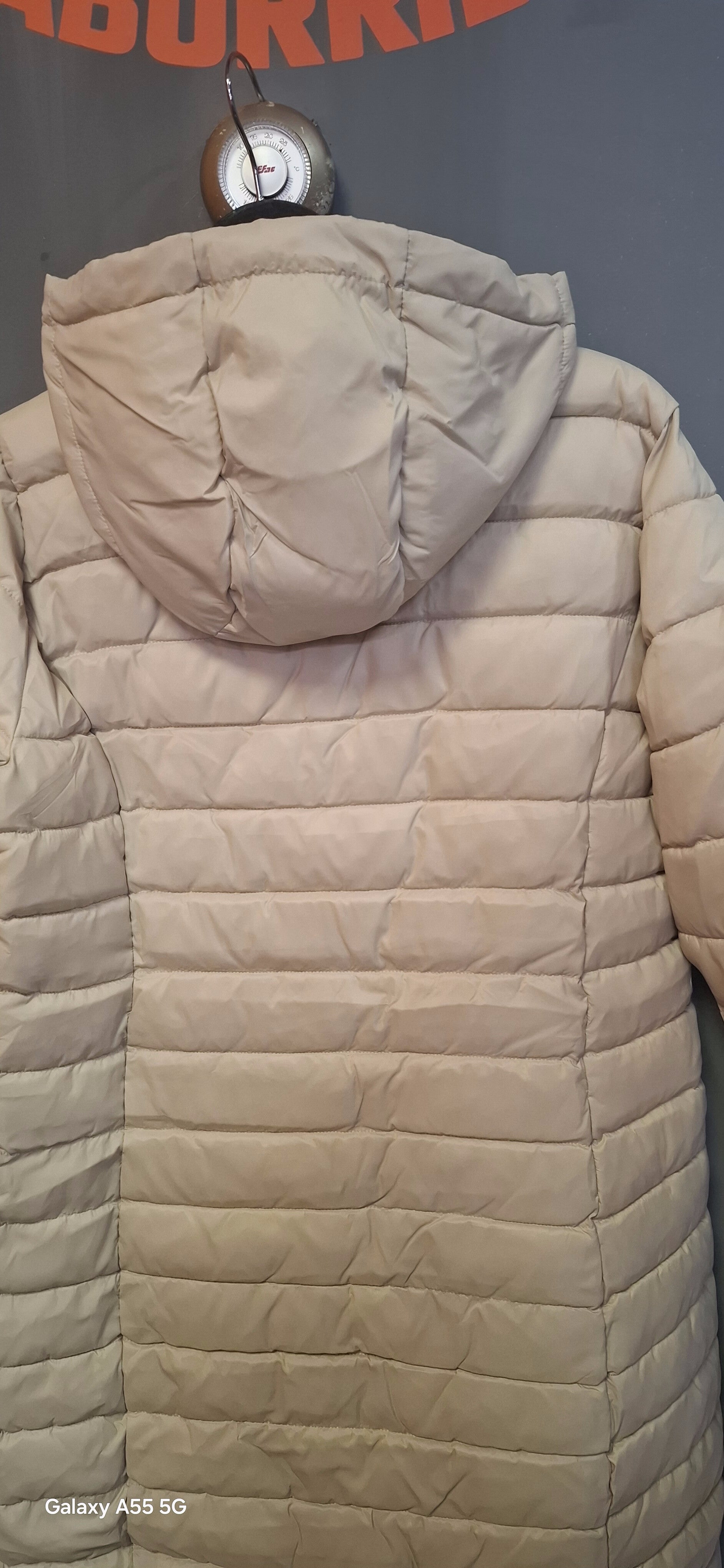 Precios y original abrigo,corte recto y extralargo,doble cremallera,bolsillos laterales y capucha no desmontable.
