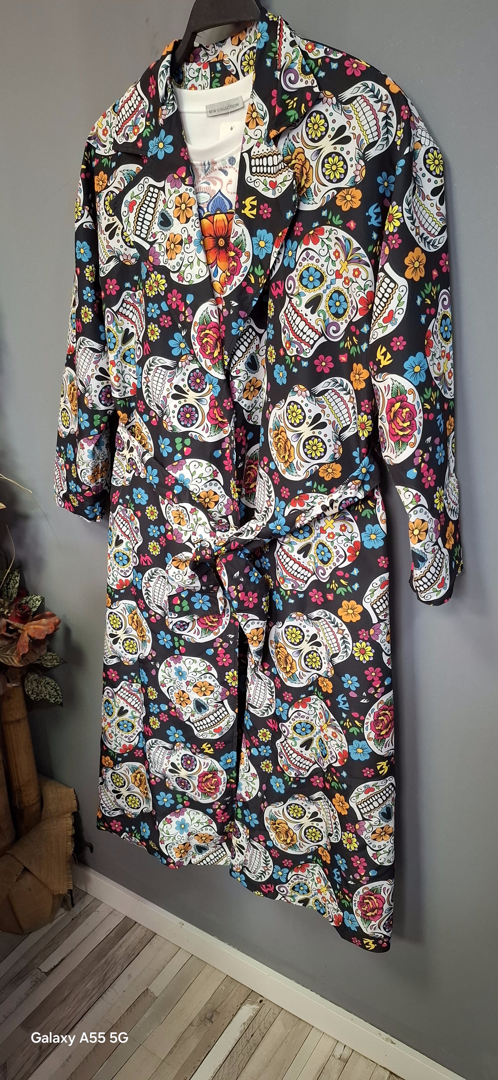 Talla única (38_46)corte amplio se ajusta con rl cinturón.,bolsillos laterales y botón central.
