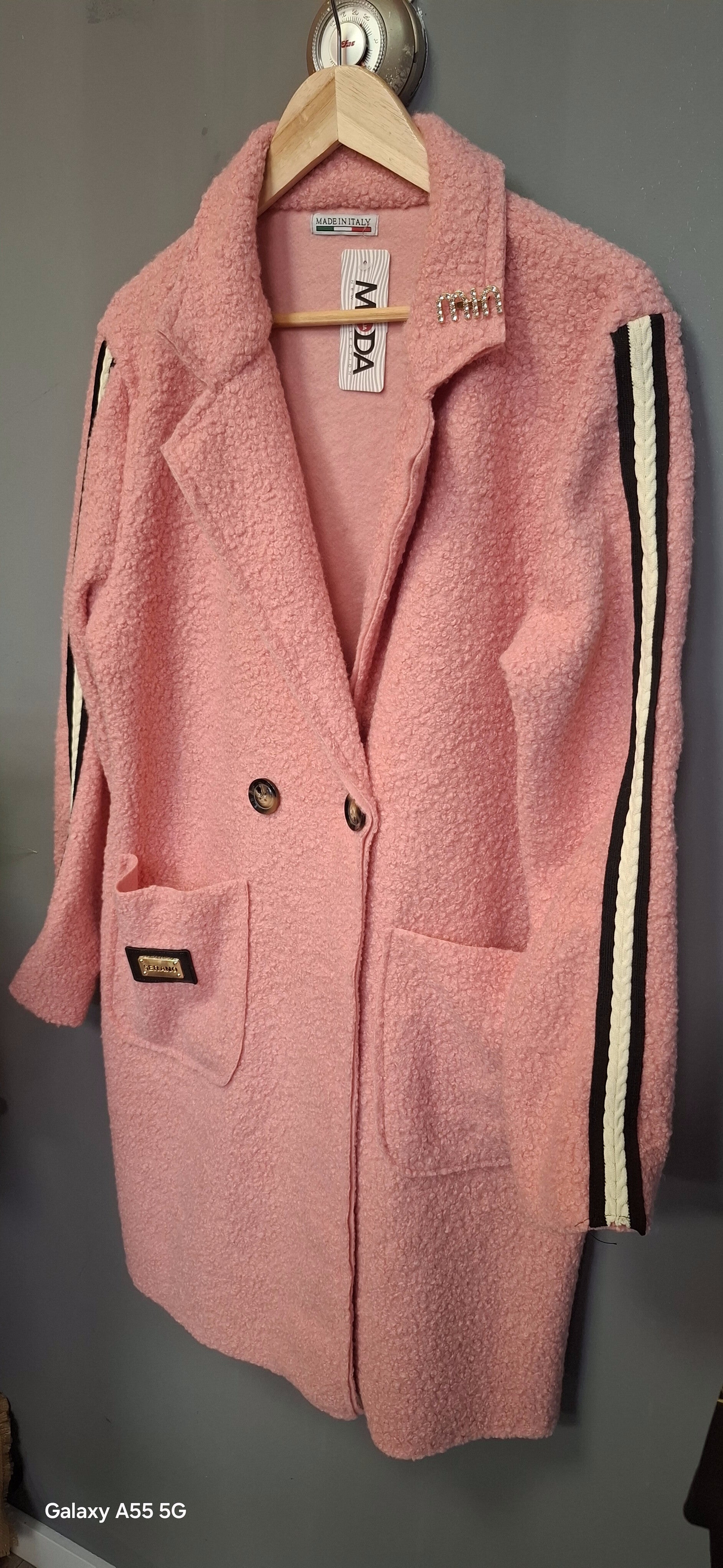 Precioso abrigo rizo,corte recto,diseño espectacular, botones y bolsillos.Detalles espectaculares.